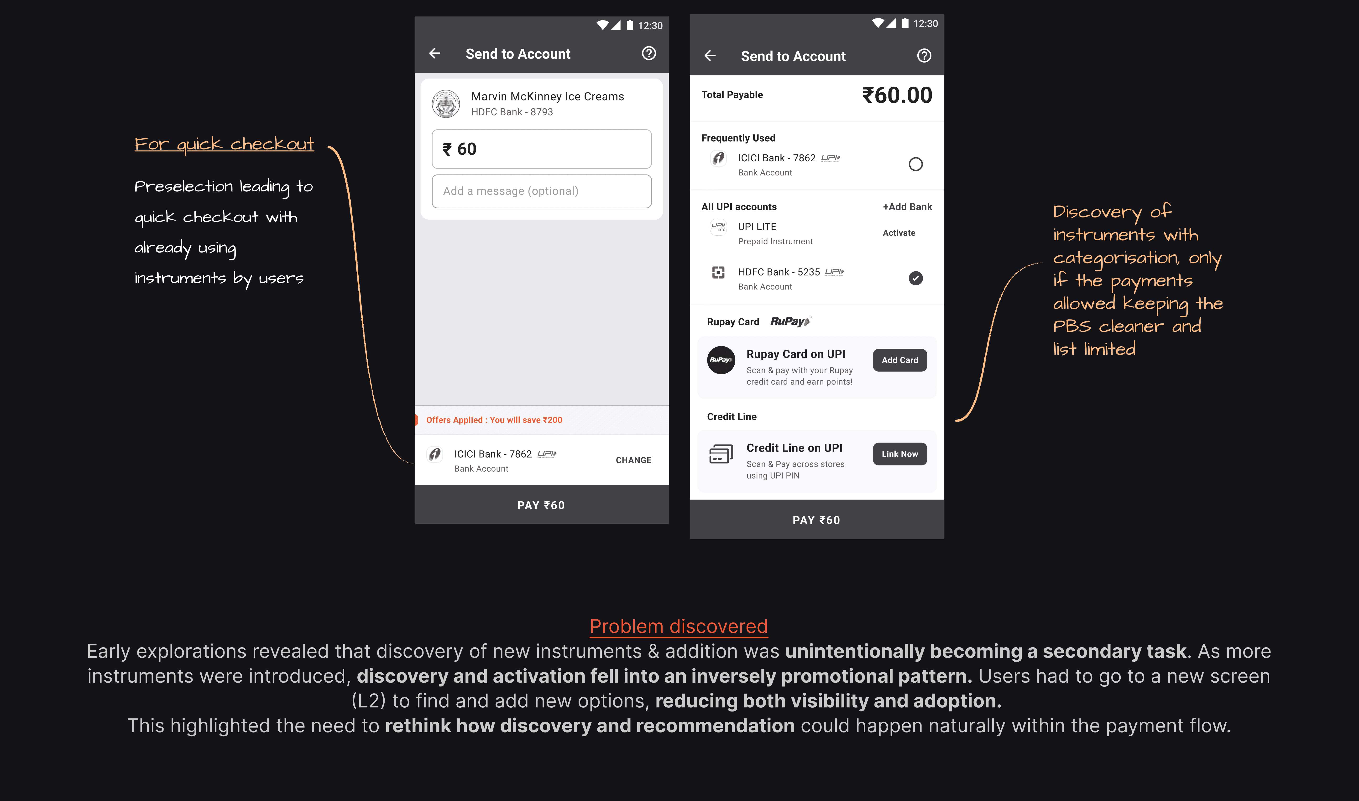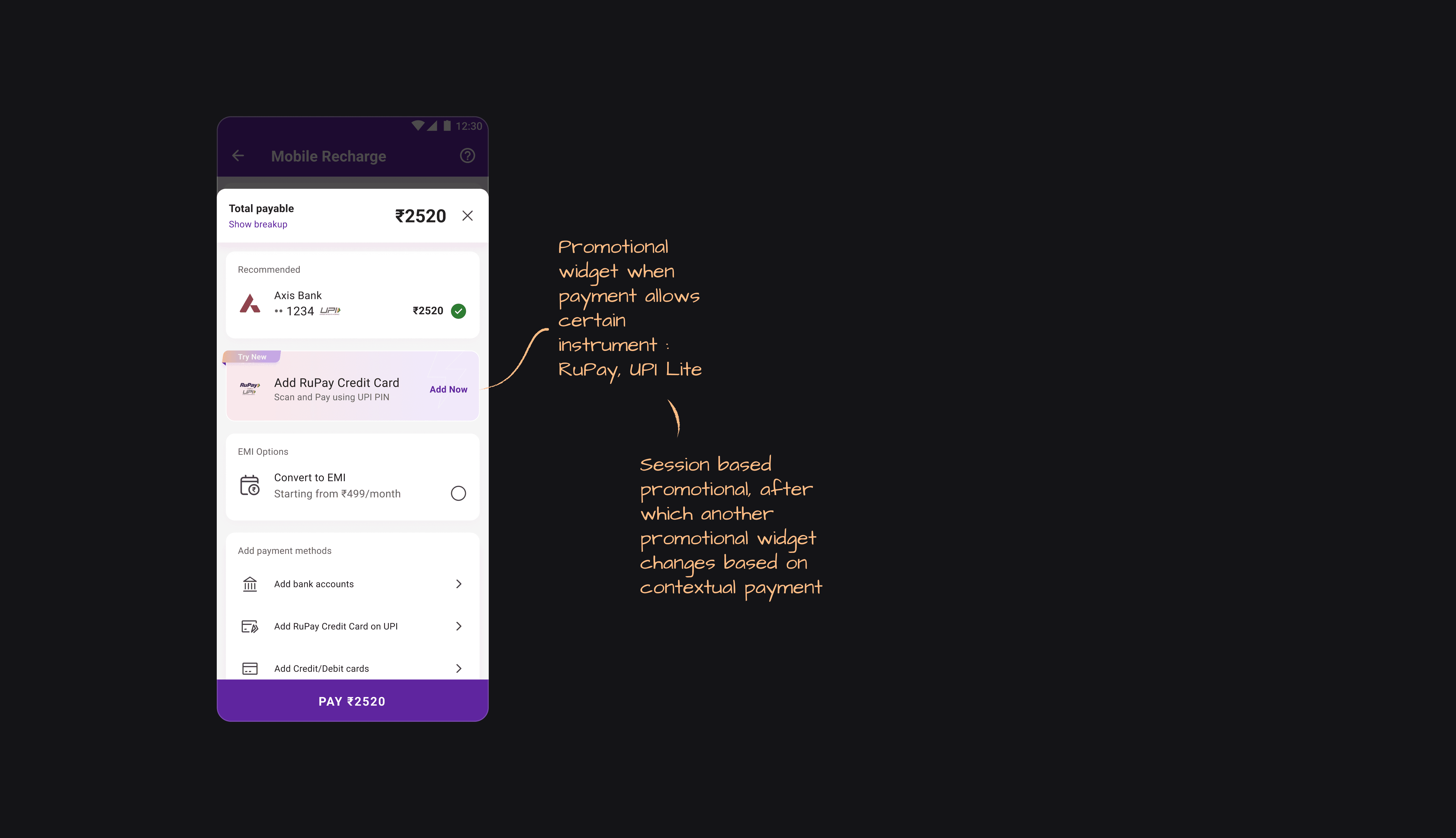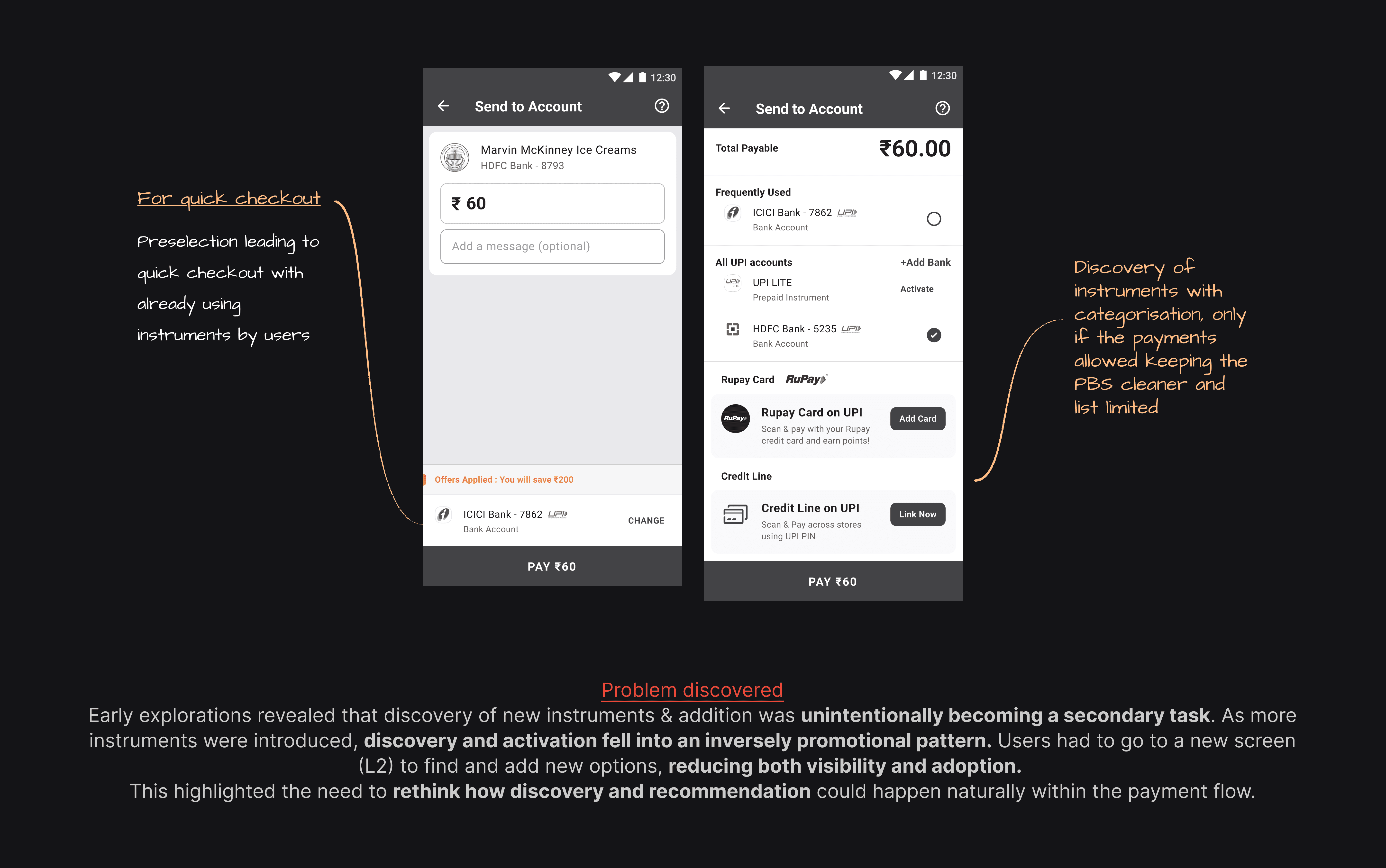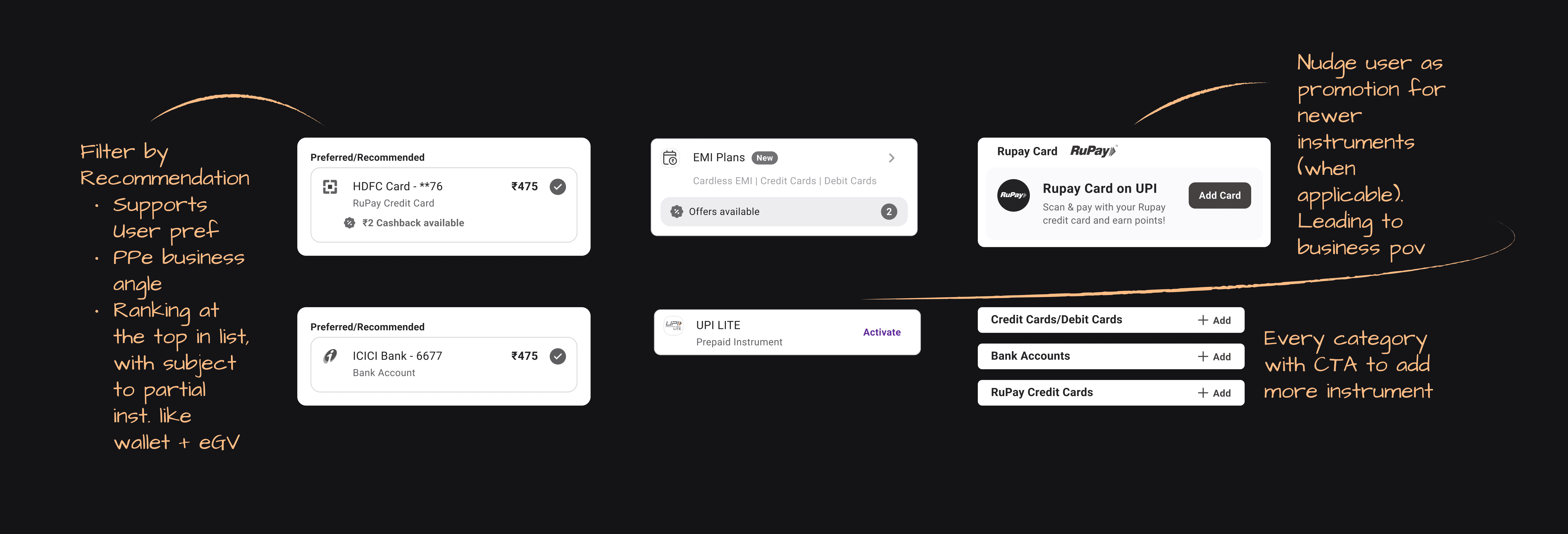 With the introduction of new instruments on UPI and the planned launch of PhonePe instruments such as EMI, BNPL, RuPay Credit Cards, and UPI Lite, the existing payment bottom sheet was no longer designed to scale.